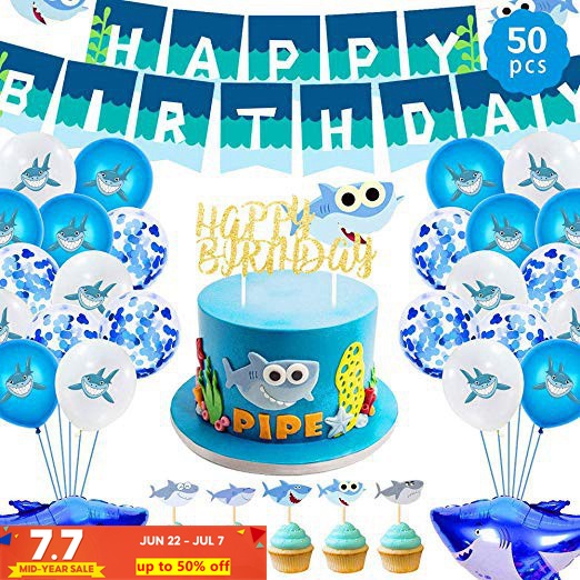 Baby Shark Theme Party - Buy Shark Party Supplies For Baby 77 Pcs Shark Theme Birthday Party Decorations For Kids Includes Shark Masks Hanging Swirl Little Shark Balloons Foil Curtains Table Cloth Banner Toppers Online In : But if you aren’t a baker or just don’t have the time to make your own fins, don’t worry!